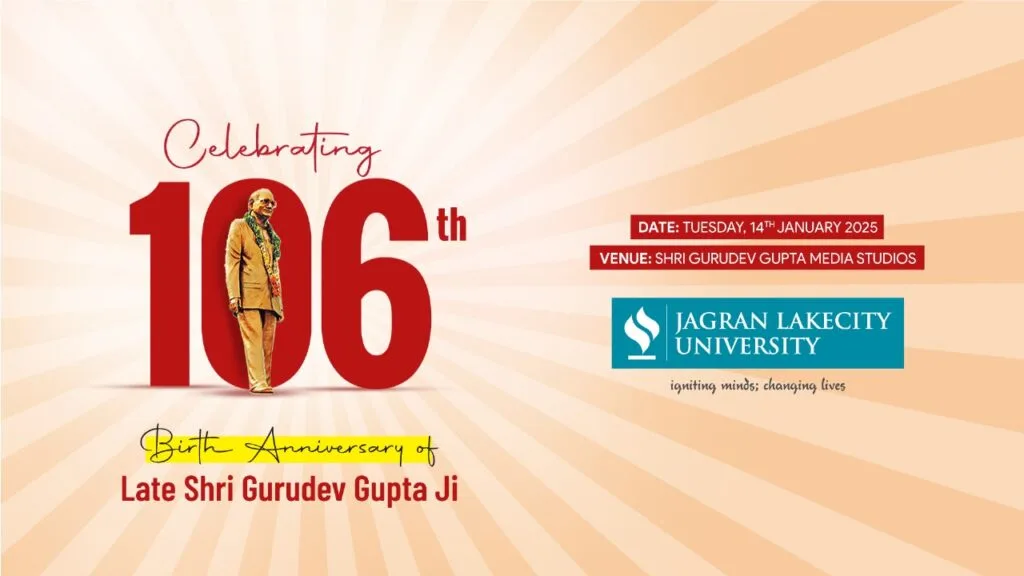 Honoring the visionary founder, Late Shri Gurudev Gupta Ji, on his 106th Birth Anniversary. Join us in celebrating his enduring legacy. Date: 14th January 2025. Venue: Shri Gurudev Gupta Media Studios