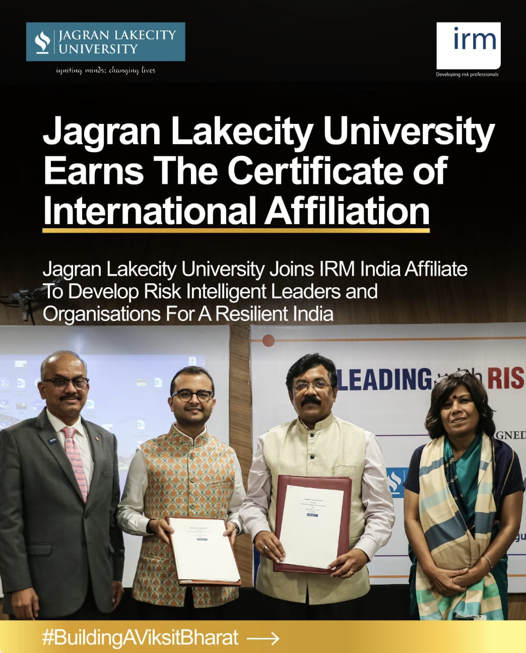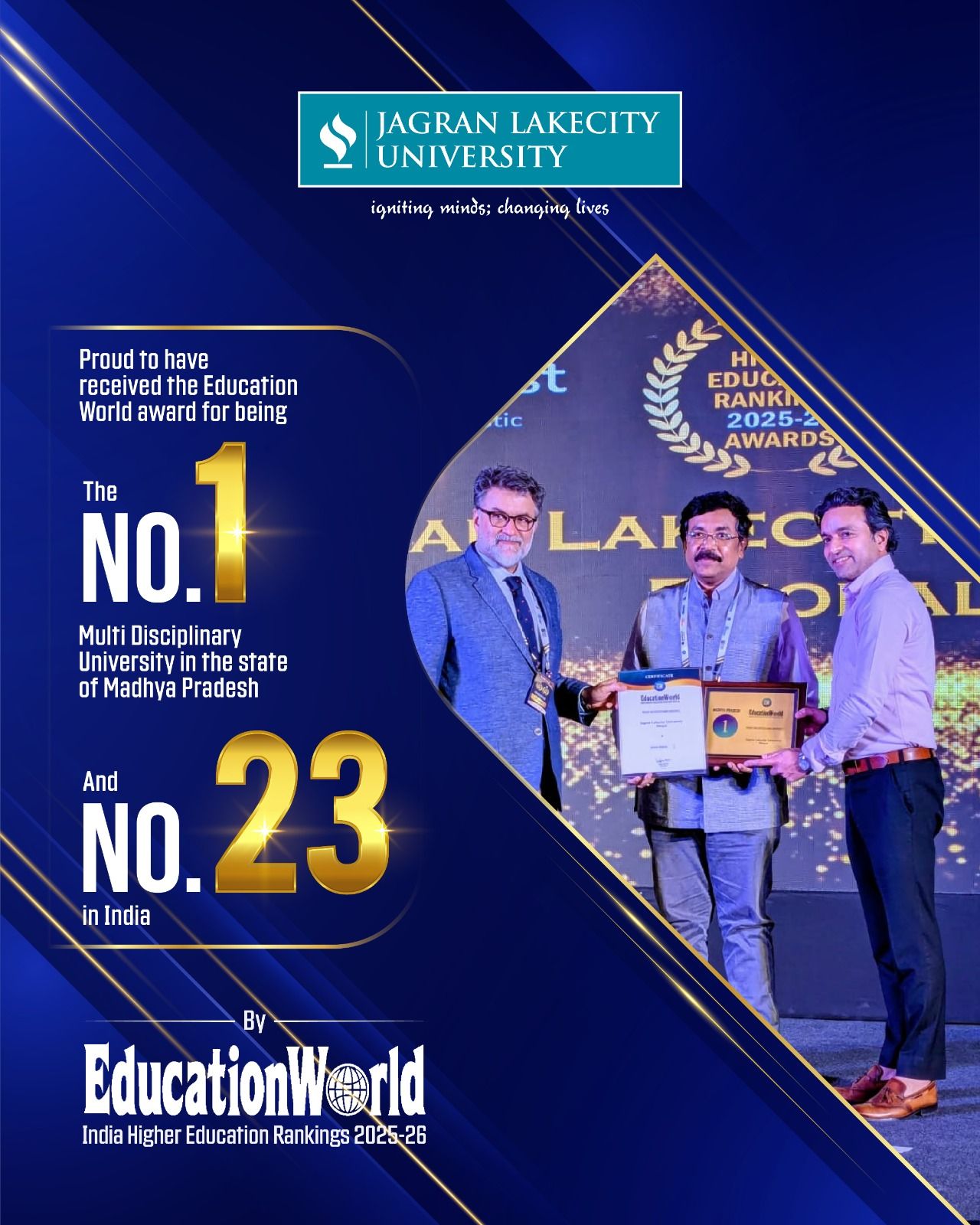 Jagran Lakecity University became the first university in MP & CG to be awarded the ‘DIAMOND’ rating by QS I-Gauge, an International Rating agency in June 2021. JLU was ranked 30th best private university in India by the Education World in 2021 and also got the E-Learning Excellence for Academic Digitisation (E-Lead) Certification 2020-21, by QS I –Gauge.